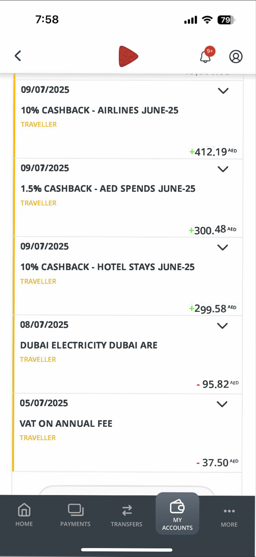- Total cashback is capped at AED 1,500 per billing cycle, up to card holder's credit limit.